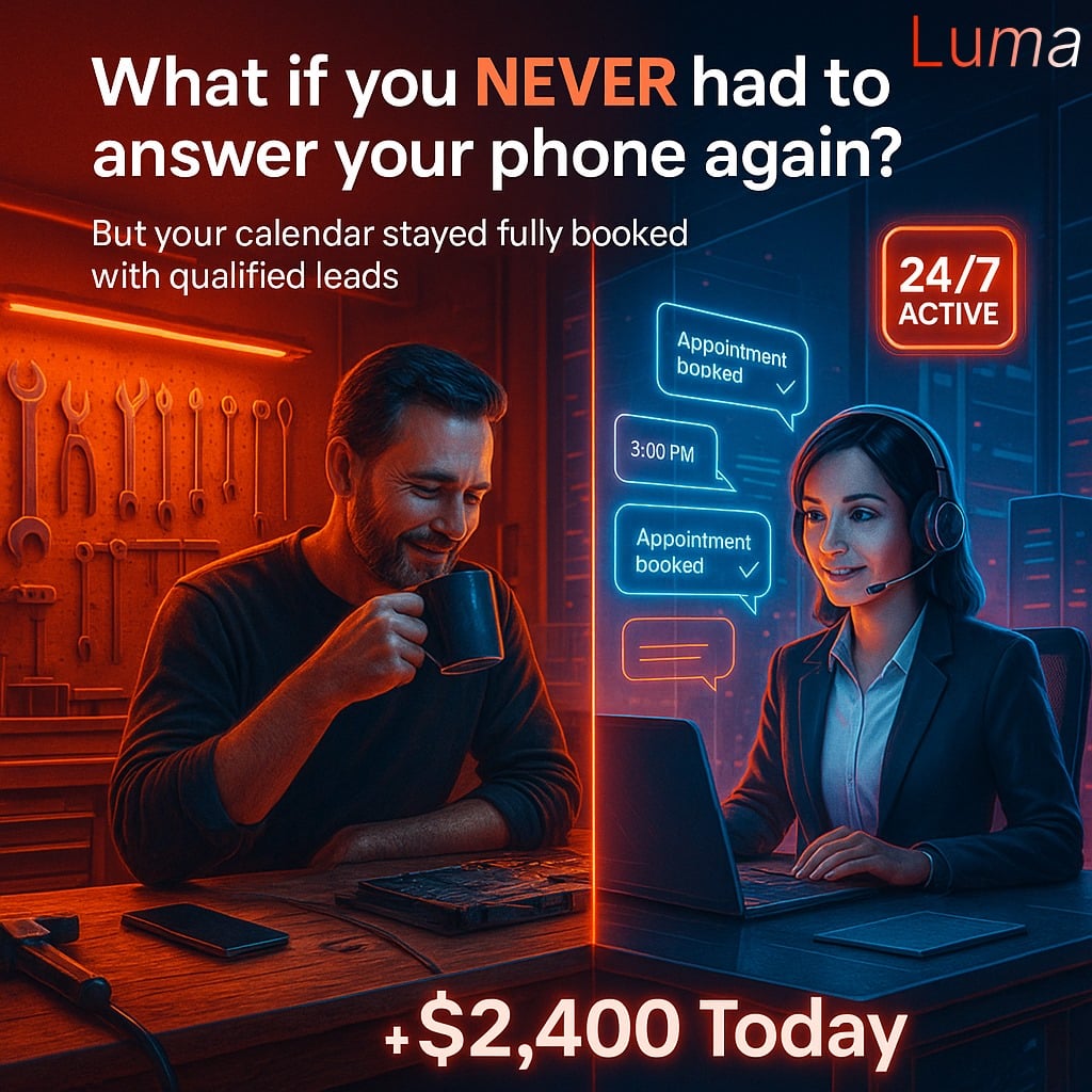 Luma never takes a break, never forgets a lead, and never gets flustered—she’s the receptionist you’ve always wanted, running 24/7 and fully trained for your business.